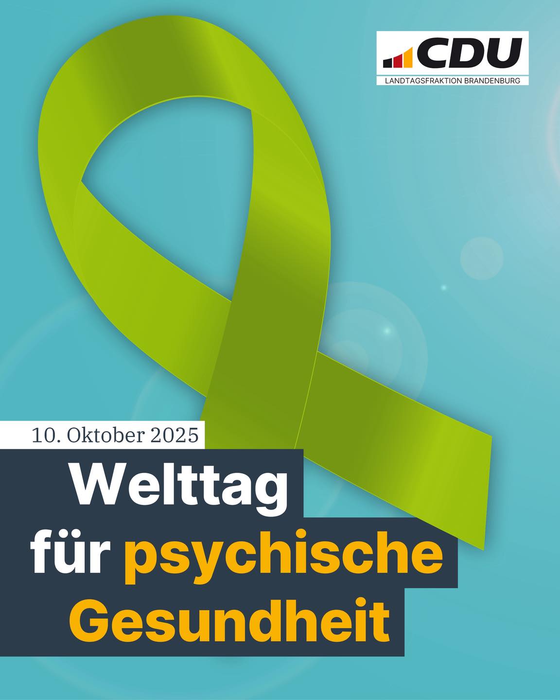 mehrHeute ist der Welttag der psychischen Gesundheit. Psychische Gesundheit ist ein Thema, das uns alle betrifft, unabhängig von Alter, Beruf oder Lebenssituation. In Brandenburg warten viele Menschen noch immer zu lange auf therapeutische Hilfe oder Unterstützung in Krisenzeiten. Niemand sollte mit seelischer Belastung allein bleiben. Als CDU-Fraktion Brandenburg setzen wir uns dafür ein, dass psychische Erkrankungen ernst genommen und die Hilfsangebote ausgebaut werden, besonders für Kinder, Jugendliche und Familien. Denn: Das seelische Wohlbefinden ist ebenso wichtig, wie das körperliche ? sie gehen Hand in Hand und bilden die Grundlage für ein langes und gesundes Leben. #WelttagderpsychischenGesundheit #Mentalhealth #CDUBrandenburg